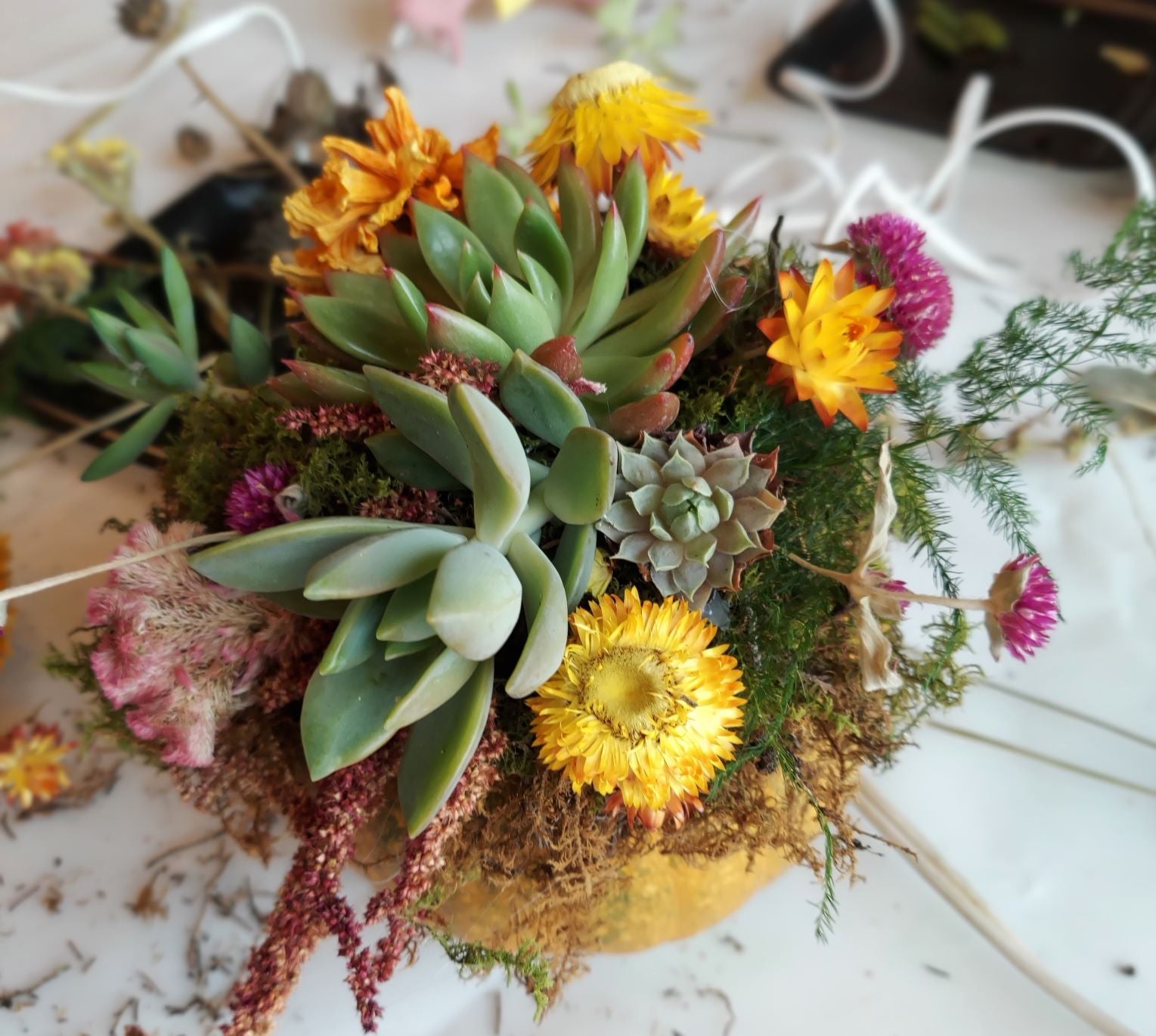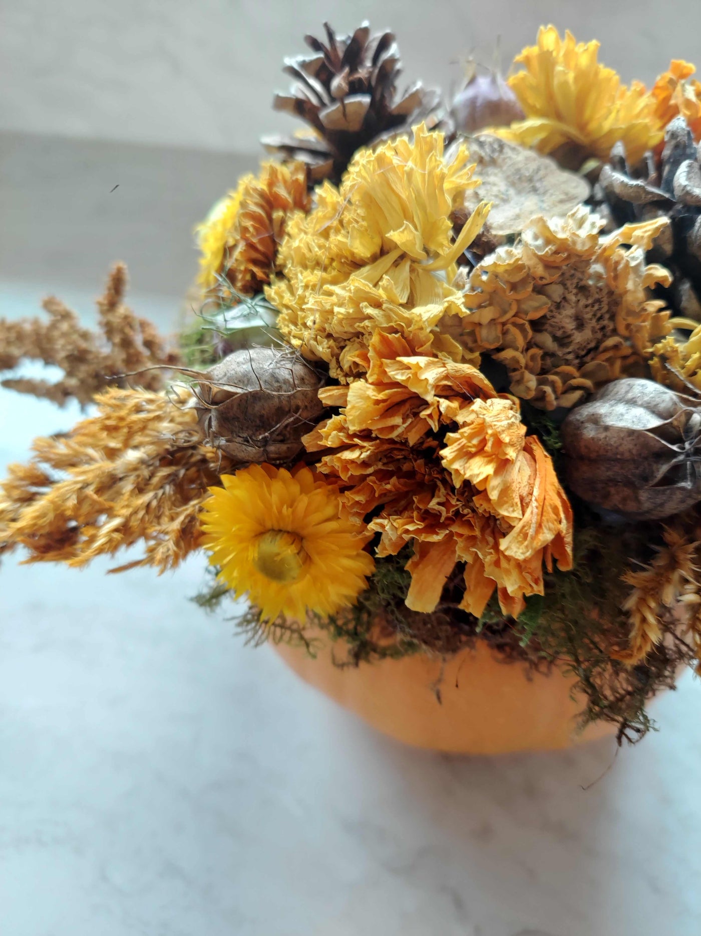 These pumpkin succulents make the cutest fall decoration with dried botanicals from our farm and succulents that last well into the new year! This is a fun and relaxing class to do with friends or family.