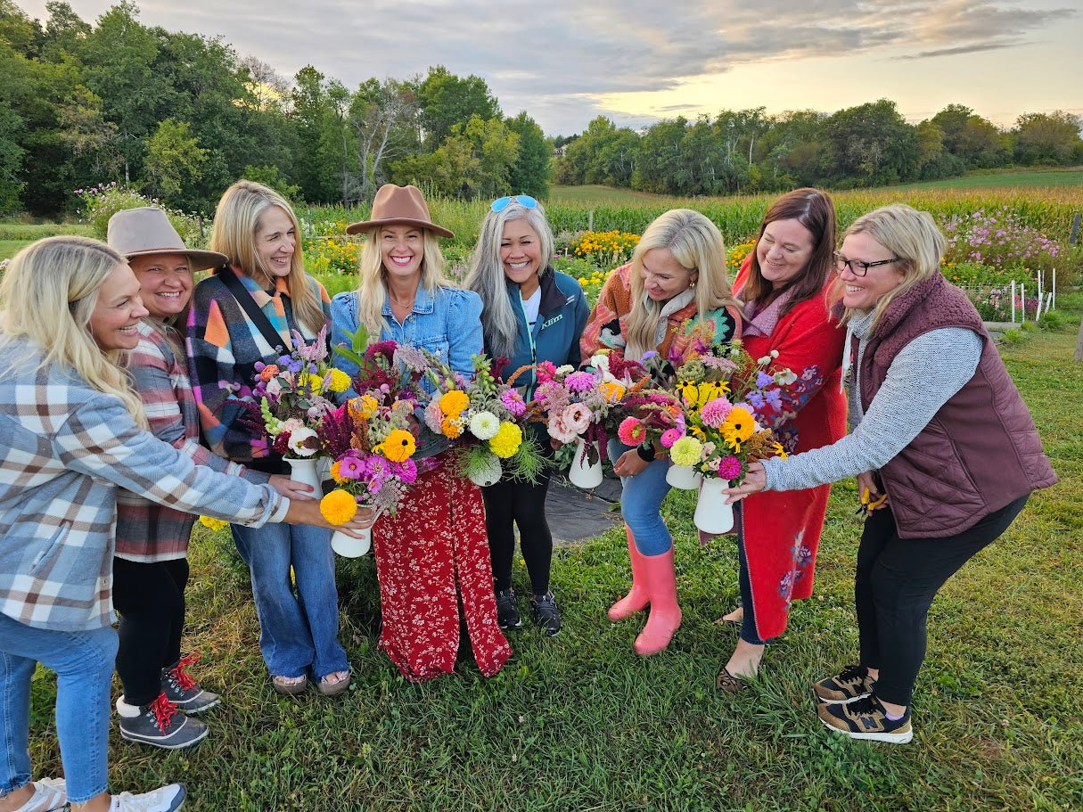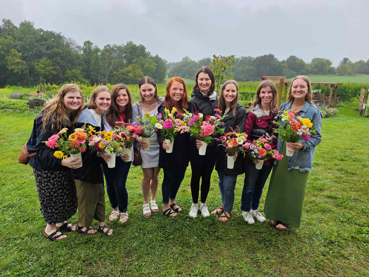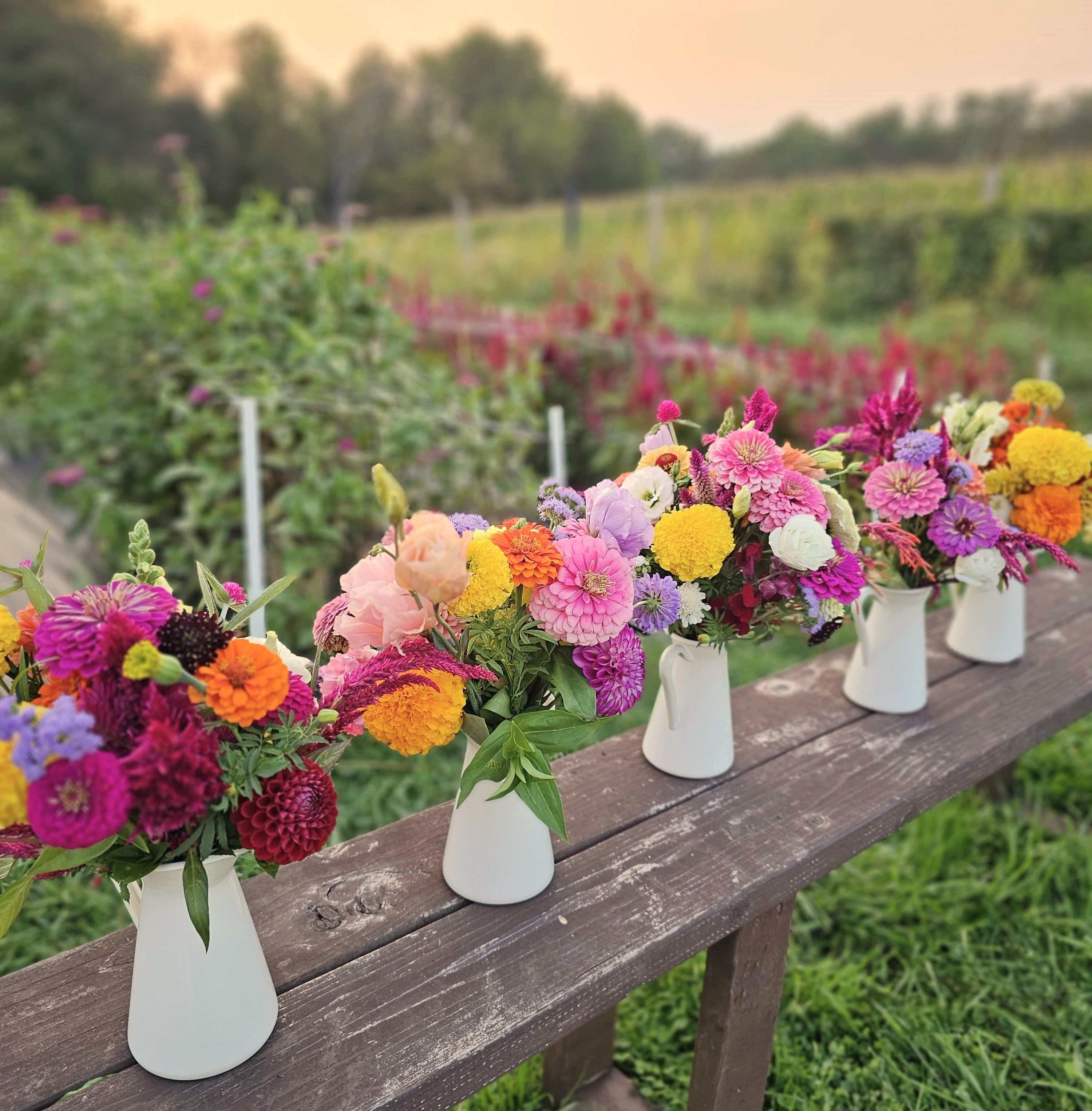 Our Flower Barn and patio have a cement floor and can be accessed from the parking area. Our flower field and grounds are not as easy for a wheelchair to maneuver through as it is grass and bumpy. But we welcome all to come and have handicap parking close to the barn. Please let us know if you need accommodations.