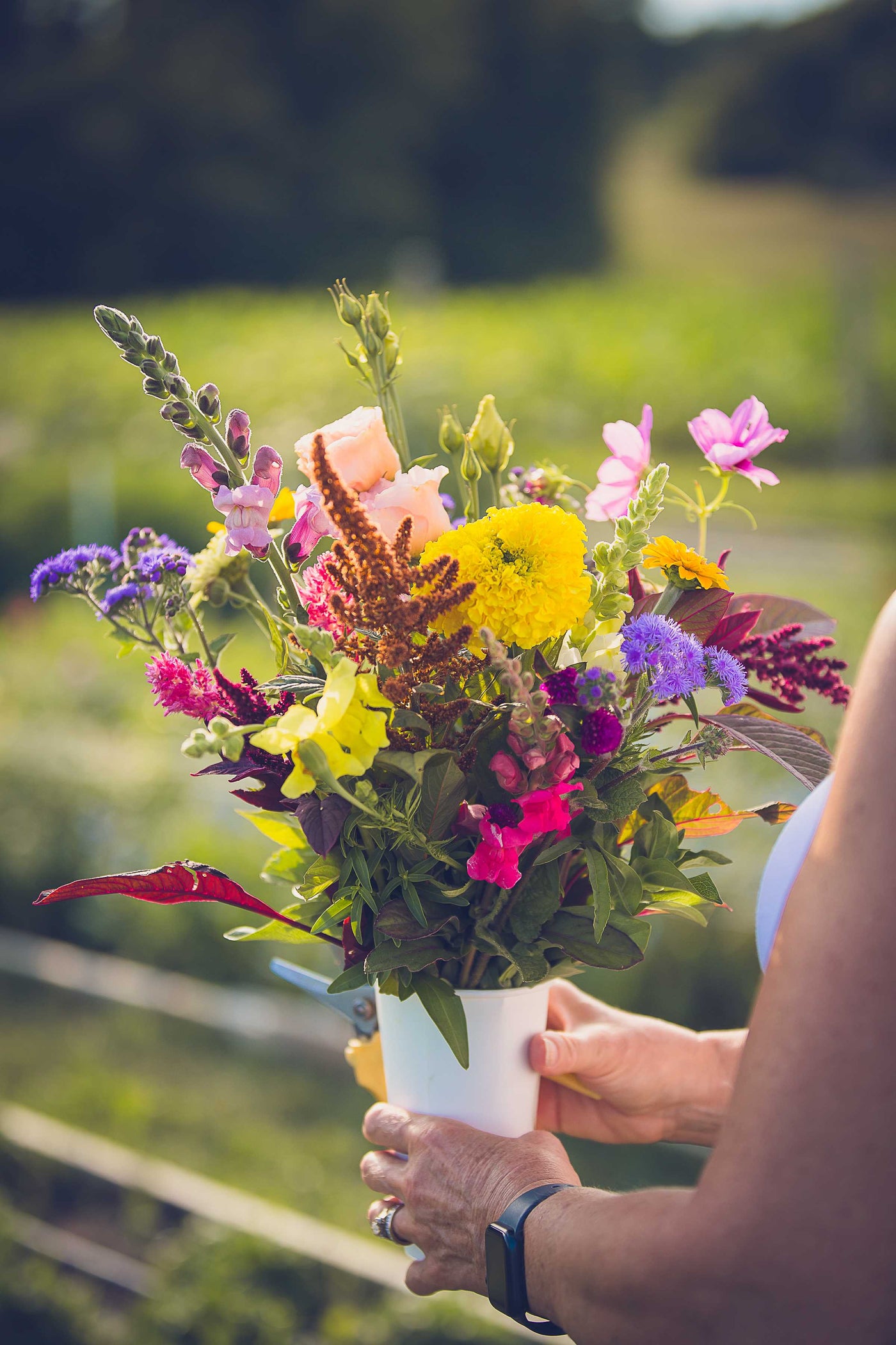 Yes. Snips and vessels for cutting into are provided and a cup is provided for you to take your bouquet home. You are welcome to bring a vase or cup in your car to take them home if you prefer.